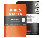 Field Notes Expedition 3-Pack—waterproof, tear-resistant notebooks designed for adventurers. Ideal for extreme conditions, ensuring your notes stay intact wherever you go. Perfect for explorers and travelers.